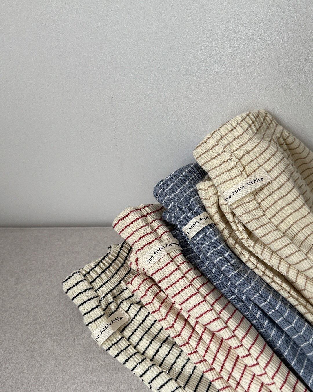 リブ編みのストライプパンツです。