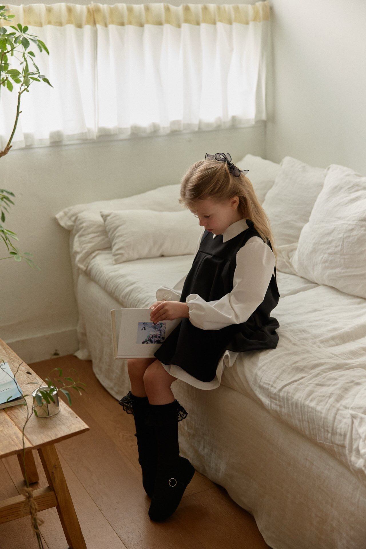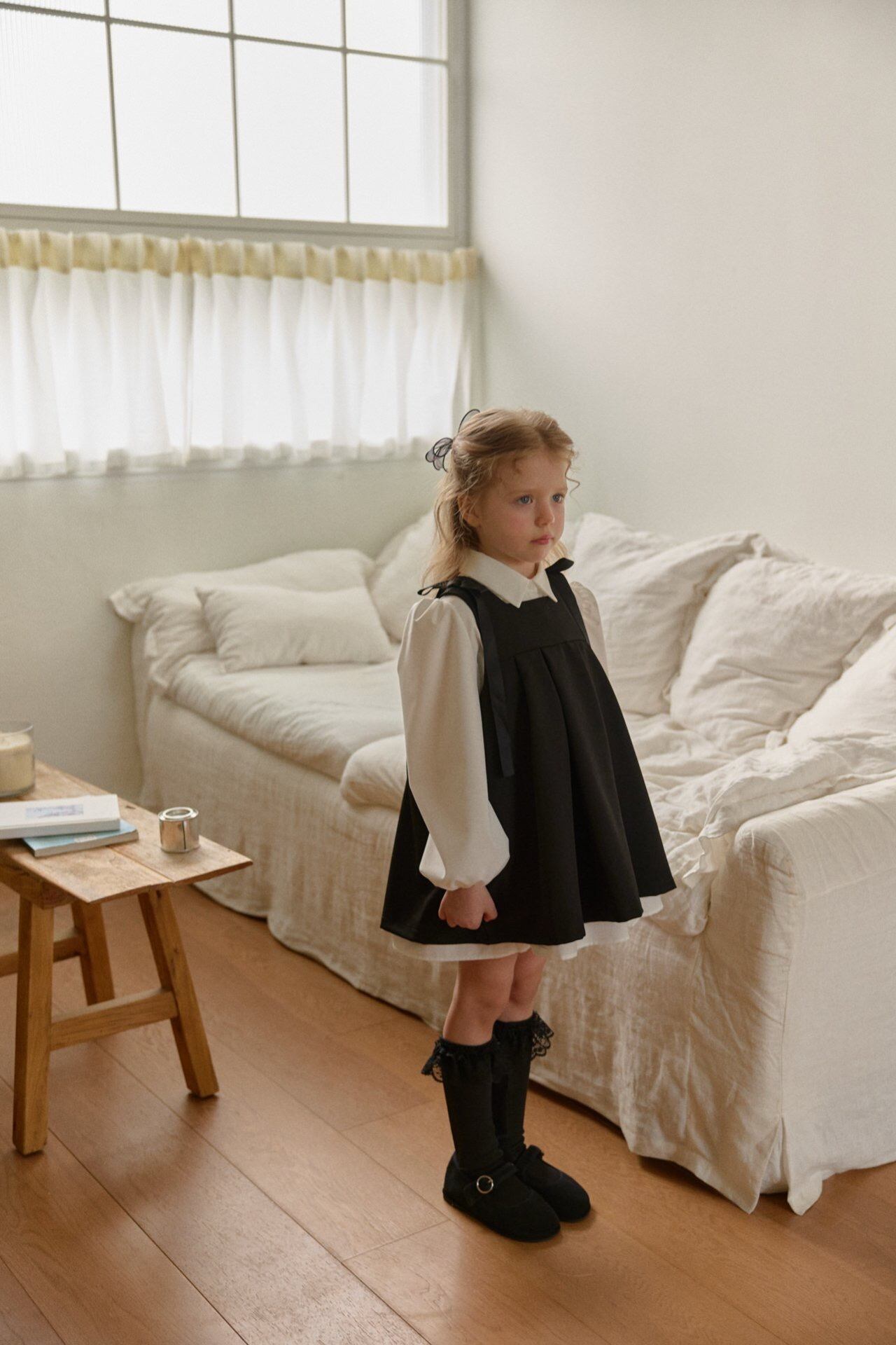 スクールルックのワンピースはきちんとしたシーンにおすすめ。