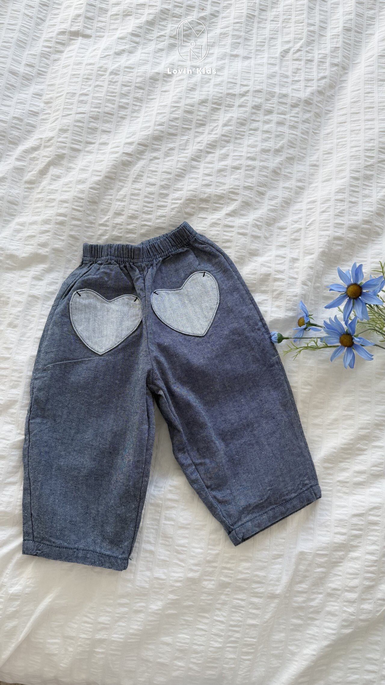 柔らかいデニム綿使用とウエストバンディングで快適な着用感です。