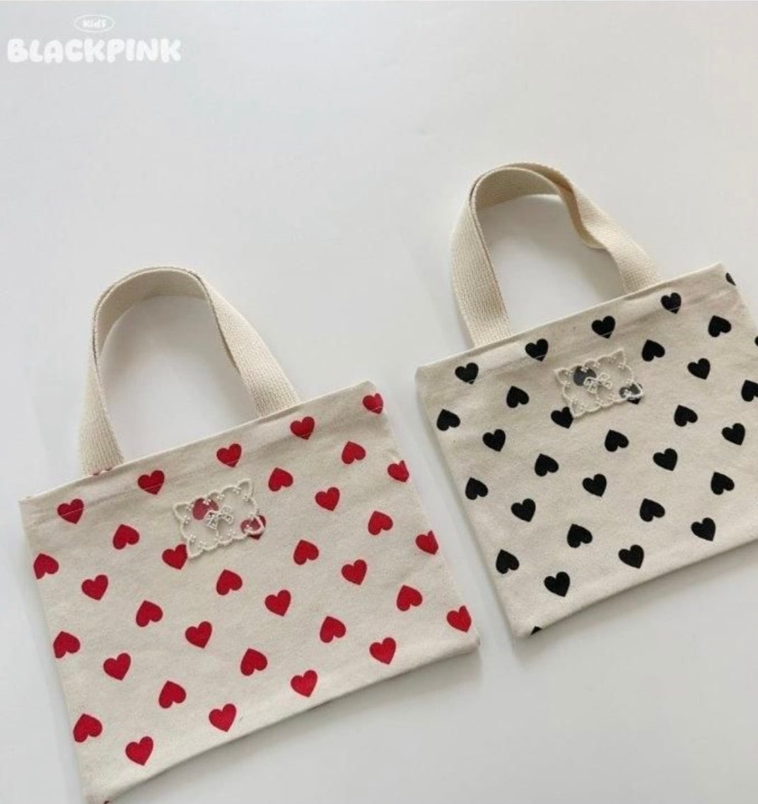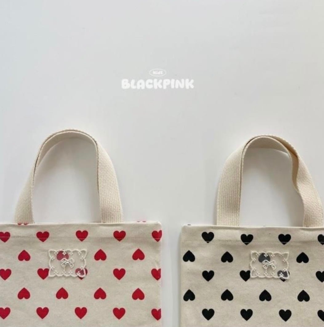 送料無料【予約】Heart Mini Eco Bag/ BLACK PINK