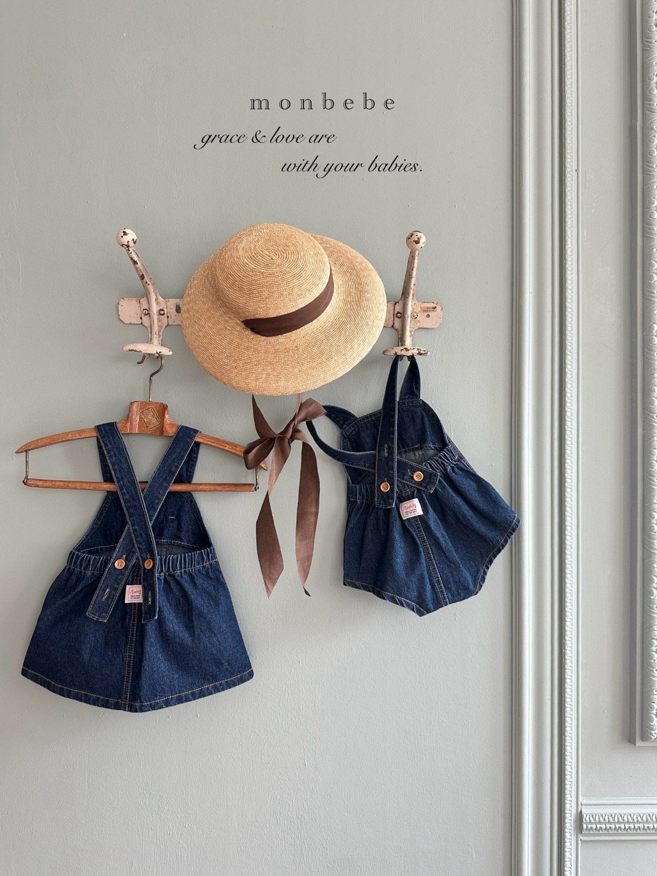 送料無料【予約】bonbon denim overall sk /monbebe